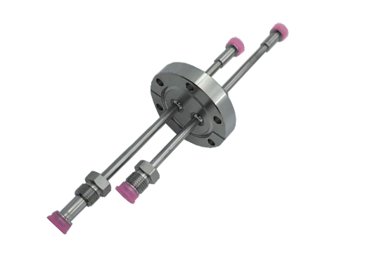 采用VCR接頭的常溫流體饋通,常用管徑為1/4"和1/8",法蘭管道及VCR接頭材質(zhì)均為316不銹鋼,溫度范圍-200~450℃,極限真空<1E-10mbar。