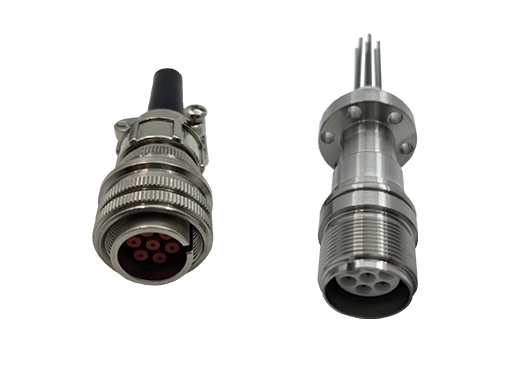 MS-12KV高壓饋通大氣端連接器符合MIL-C-5015引腳標準,引腳數量為7,對應插針直徑為1.3mm,對應線纜導體直徑<1.7mm,引腳材料為鍍金銅合金,大氣端連接器為聚合物材質,溫度范圍<120℃。可提供大氣端連接器及插針套裝。